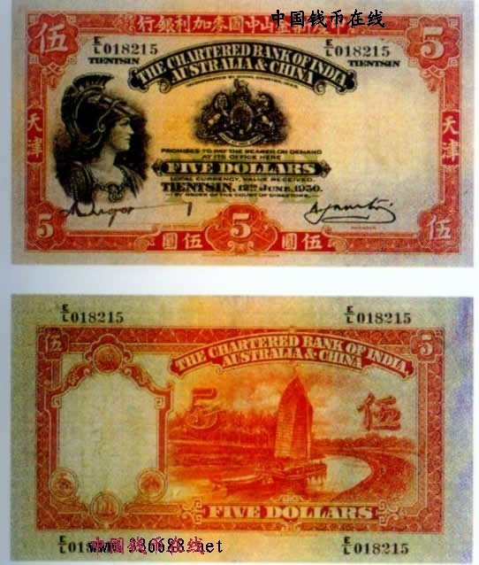 [图文]1930年印度新金山中国麦加利银行   5元         ★★★