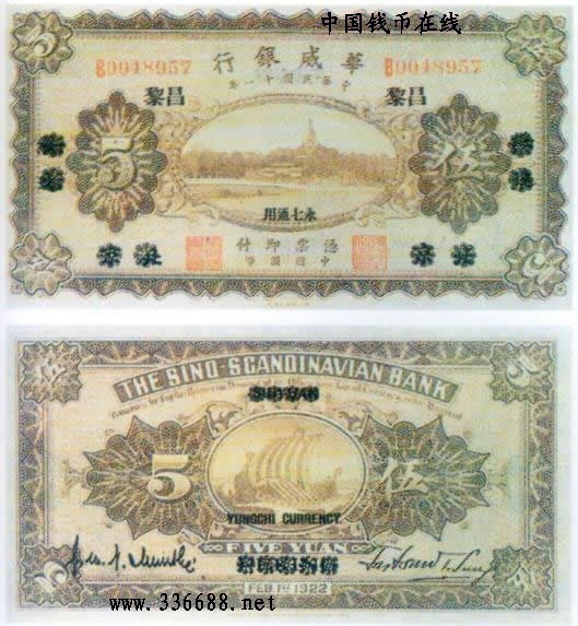 1922年华威银行   5元
